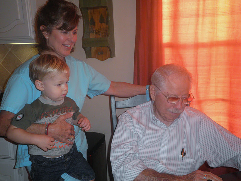 I had Papa and Mimi over for dinner and National Night Out festivities on Tuesday night. Daddy was out of town so he missed out on all of the fun. We called Alicia and did Facetime with her. Papa thought it was so neat to get to see her and talk to her at the same time. He had never seen the Facetime application before. She took him on a tour of her house because he's never been to Houston to see it. We enjoyed a delicious southern style dinner of brown sugar ham, beans and cornbread and sweet potatoes, yum! After dinner, we walked across the street to the school playground and listened to the wonderful 70's band and let Merit play on the playground. Many of our neighbors were there; it was fun to get to visit with some of them. What a fantastic night!